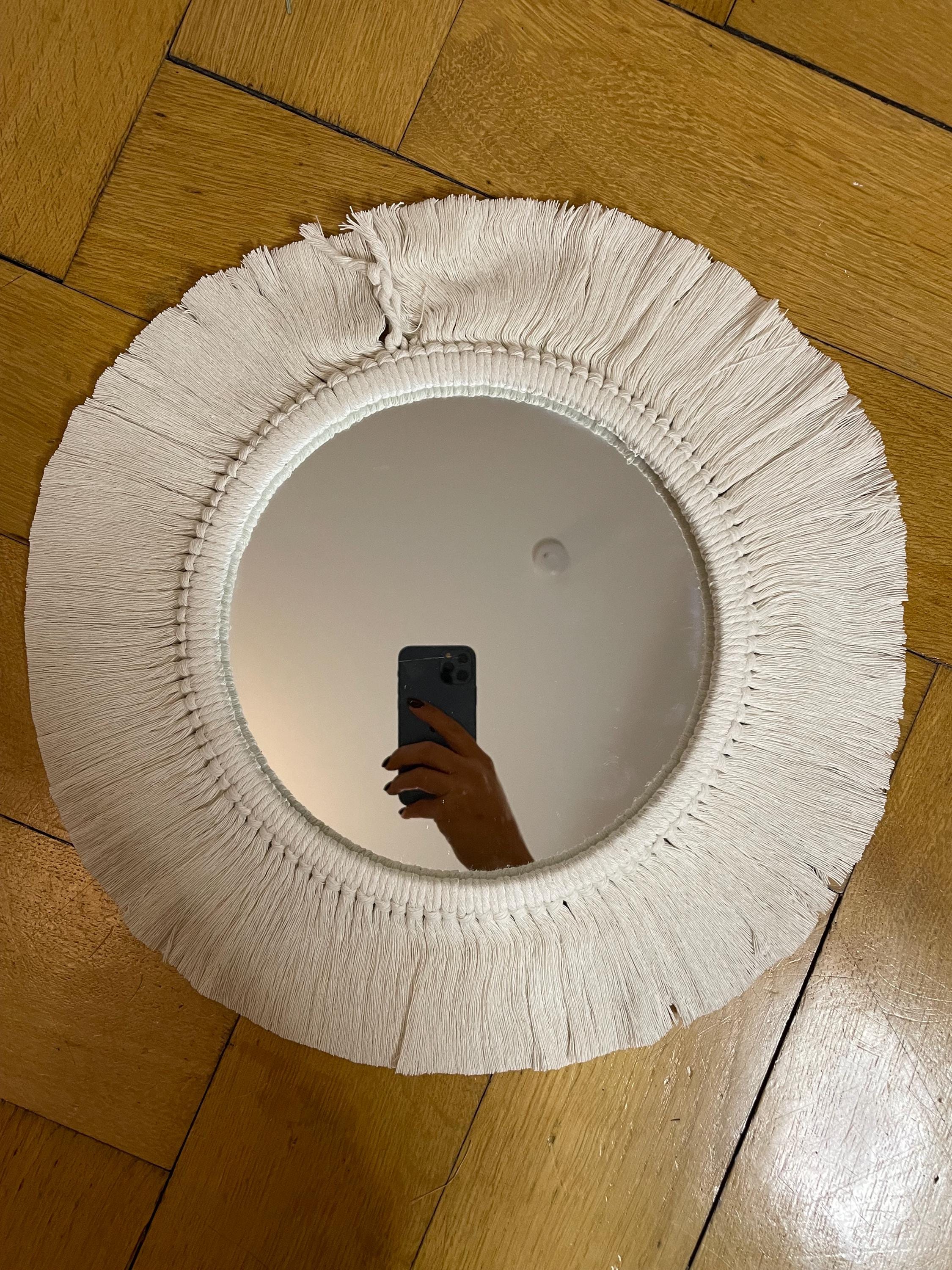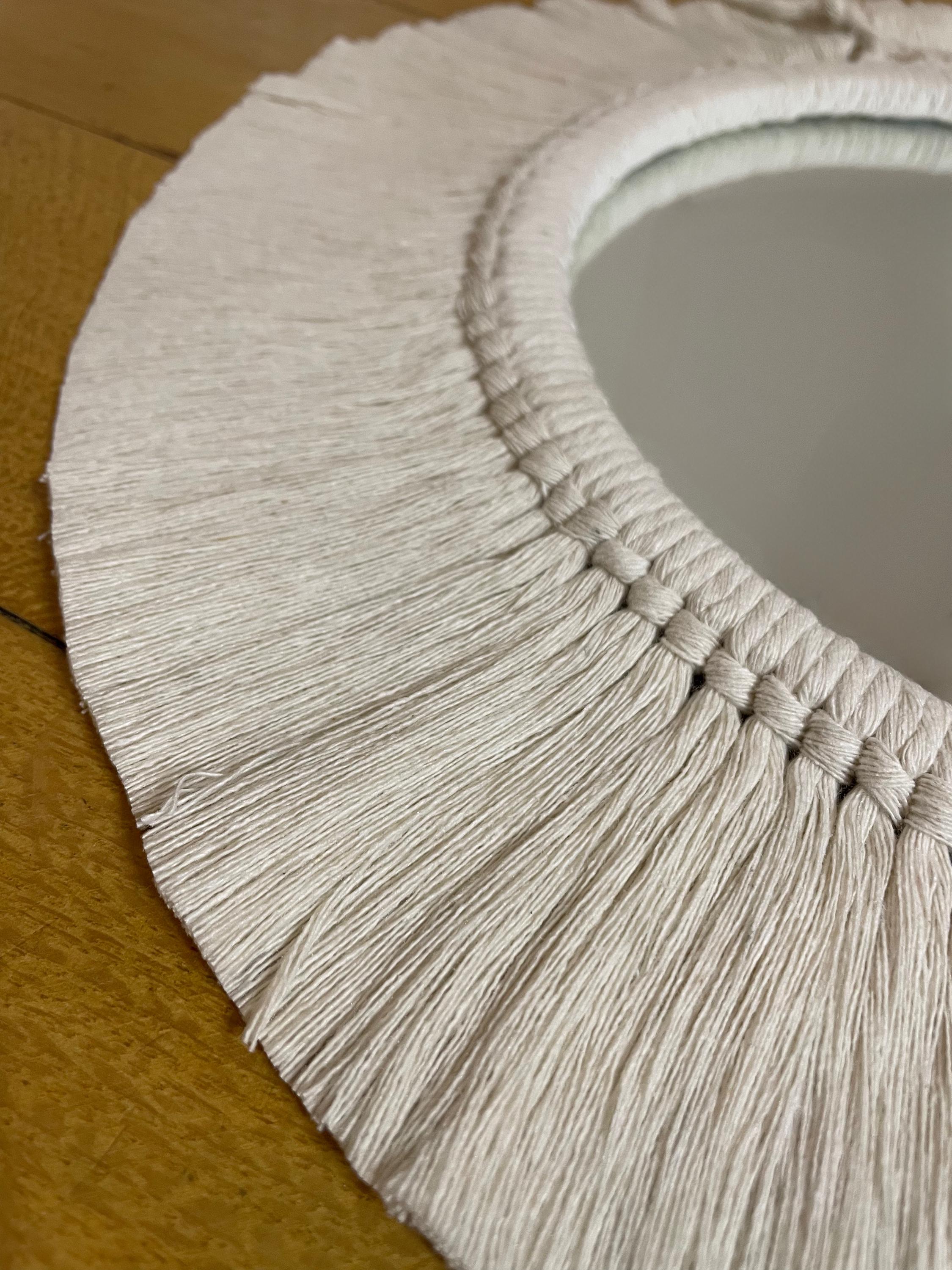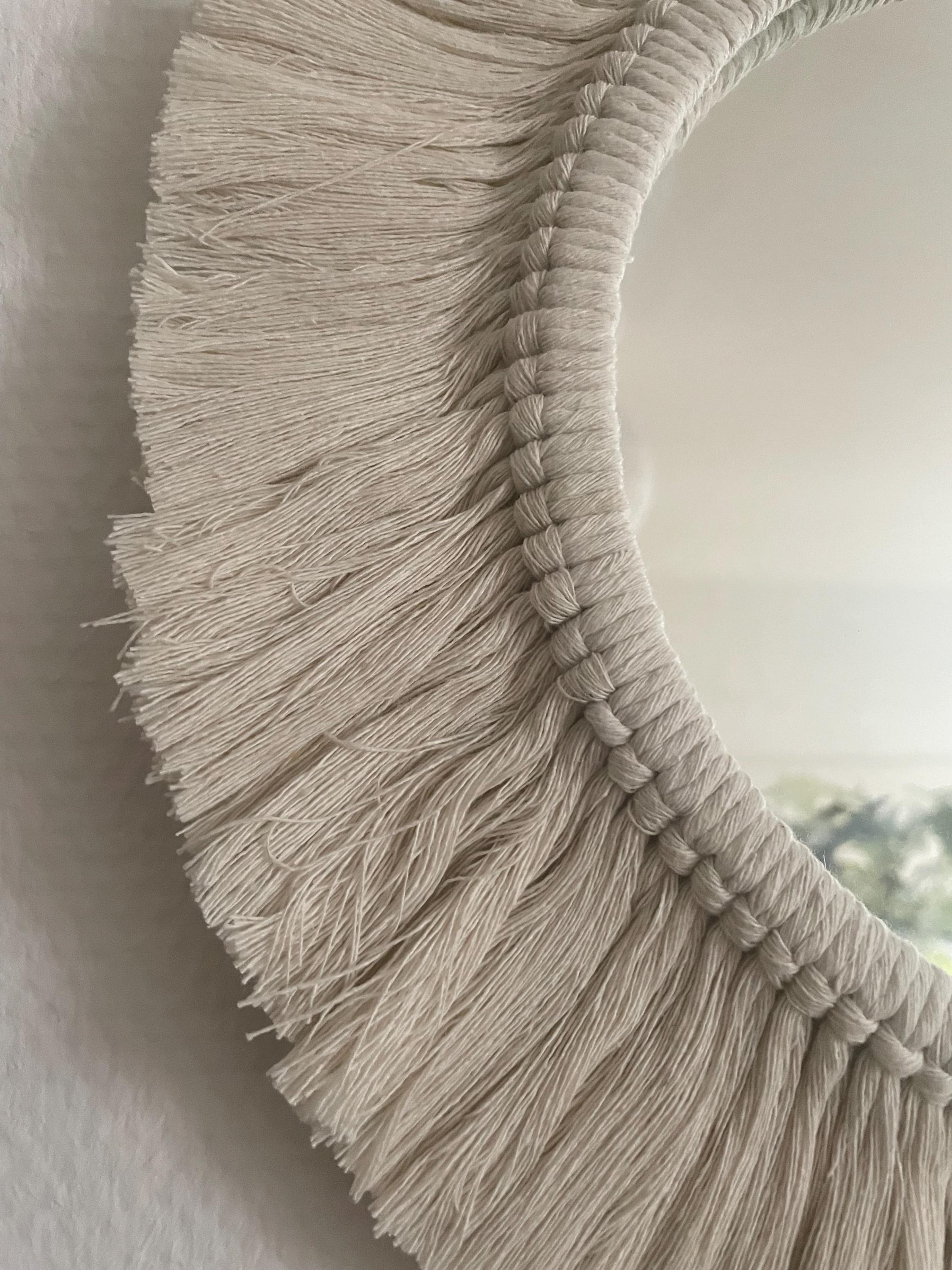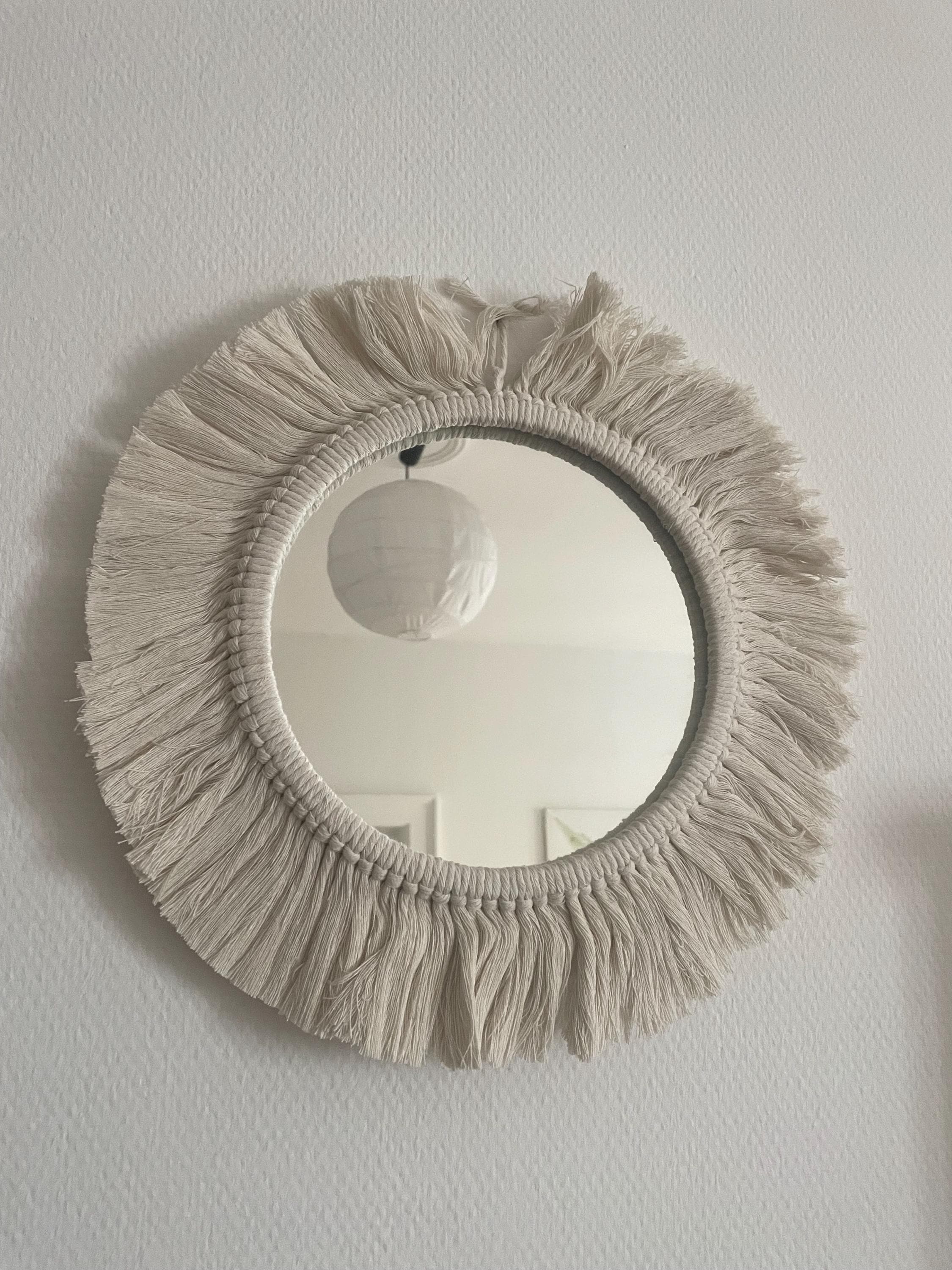Add a special touch to your room with this unique mirror. Made from macramé yarn, this work of art is a true eye-catcher.